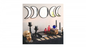50% OFF at $14.99 Moon Phases Acrylic 5 Mirror Set – Natural Scandinavian Decor with Hanging Template – Moveable or Permanent Self-Adhesive – Spiritual Halloween Decoration with Gift Packaging