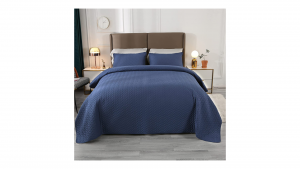 50% OFF at $16.99 Ultra Soft Reversible Quilt Set Twin Size 3 Piece, Classic Geometric Ultrasonic Embossing Microfiber Quilted Bedspread Coverlet Bedding Set for All Season with 2 Pillow Shams