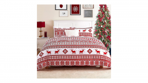 70% OFF at $7.99 Christmas Duvet Cover Set, Queen Size Christmas Holiday Decorative Comforter Cover Set Red with Christmas Reindeer and Snowflake Patterns 3 PCS