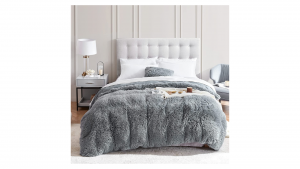 60% OFF at $21.99 Faux Fur Duvet Cover, Ultra Soft Fluffy Comforter Cover Queen Size, Grey Plush Fuzzy Duvet Cover with Luxury Velvet on Reverse Zipper Closure 1PC