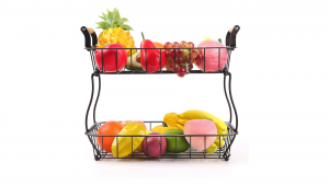 50% OFF at $11.49 2 Tier Fruit Basket For Kitchen Fruit Bowl For Kitchen Counter Countertop Vegetable Storage With Wooden Handle