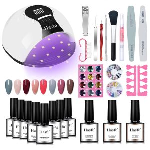 50% OFF at $19.99 Gel Nail Polish Kit with UV Light, Hasfu 84W Nail Lamp 8 Nude Colors Gel Nail Set Gel Polish Starter Kit with No Wipe Base Top Coat, Nail Primer, Nail Art Decorations, 9 Pcs Manicure Tools