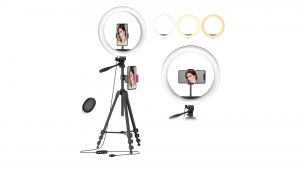 55% OFF at $15.83 12.6″ Selfie Ring Light with 54″ Tripod Stand & Flexible Phone Holder for Live Stream/Makeup/Photography,Upgraded Dimmable LED Beauty Camera Ringlight for YouTube Video Compatible with All Cellphone