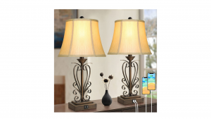 50% OFF at $44.99 Set of 2 Vintage Touch Control Table Lamps for Bedroom Nightstand 3-Way Dimmable Rustic Bedside Lamps with 2 USB Charging Ports Bronze Living Room Reading Desk Lamps Bell Shape Shades, Bulbs Included