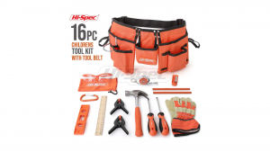 30% OFF at $26.59 👉16 Piece Kid’s👈 Orange Tool Kit Set with Tool Belt. Real Metal DIY Hand Tools for Children & Starters Including Work Gloves, Dust Glasses & More